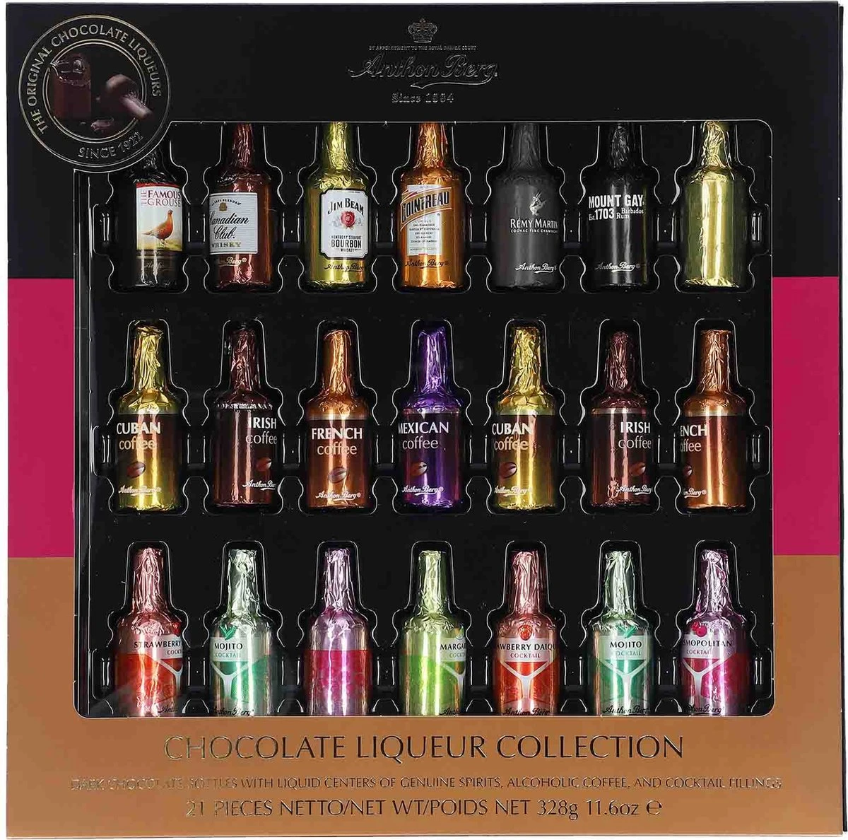 De selectie van de speciale klasse. Met de fijne Anthon Berg Chocolate Liqueur Collection worden veeleisende fijnproevers smaakvol verwend. De kleine flesjes zijn gemaakt van fijne donkere chocolade gevuld met high-proof sterke drank en koffielikeuren. Fruitige cocktailvarianten maken het assortiment compleet.