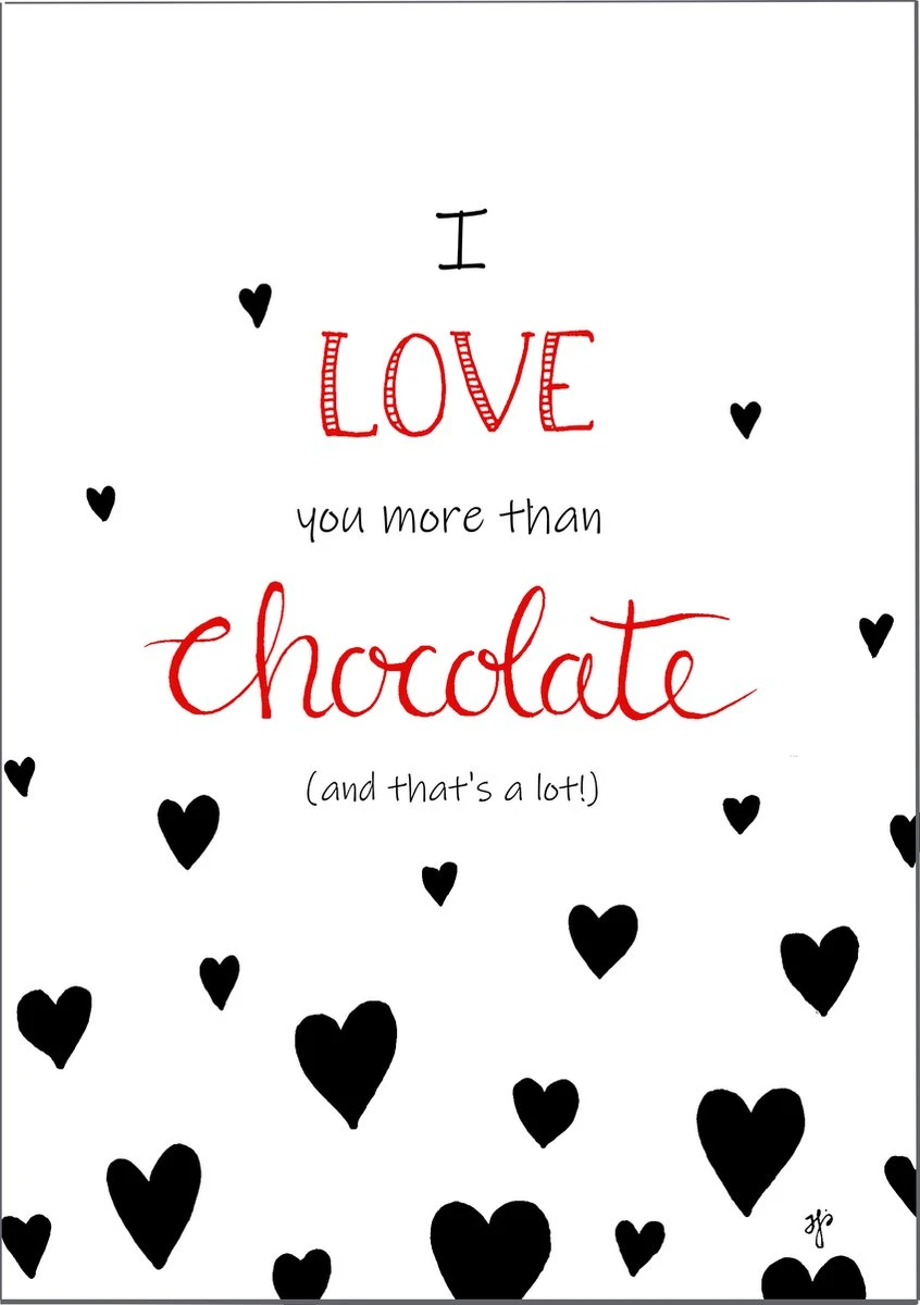 – Een bijpassende wenskaart met de tekst “I love you more than chocolate (and that’s a lot!)”