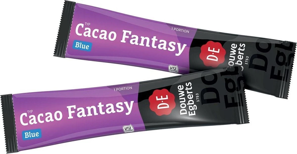 Romige, warme chocoladedrank met een heerlijke smaak, gewoon in combinatie met uw waterkoker! Met Douwe Egberts Cacao Fantasy heeft u binnen no-time een volle, rijke, licht-zoete smaak voor een heerlijk drankje. En dat gewoon uit een zakje Een heerlijke drinkervaring is het gevolg. Geniet op elk moment van een heerlijke chocoladedrank. Of dat nu de klassieke chocolademelk is, of misschien wel een Caf‚ Choc, met Cacao Fantasy heeft u het in een handomdraai voor elkaar! Een doos bevat 100 sticks van 18.5 gram per stuk.