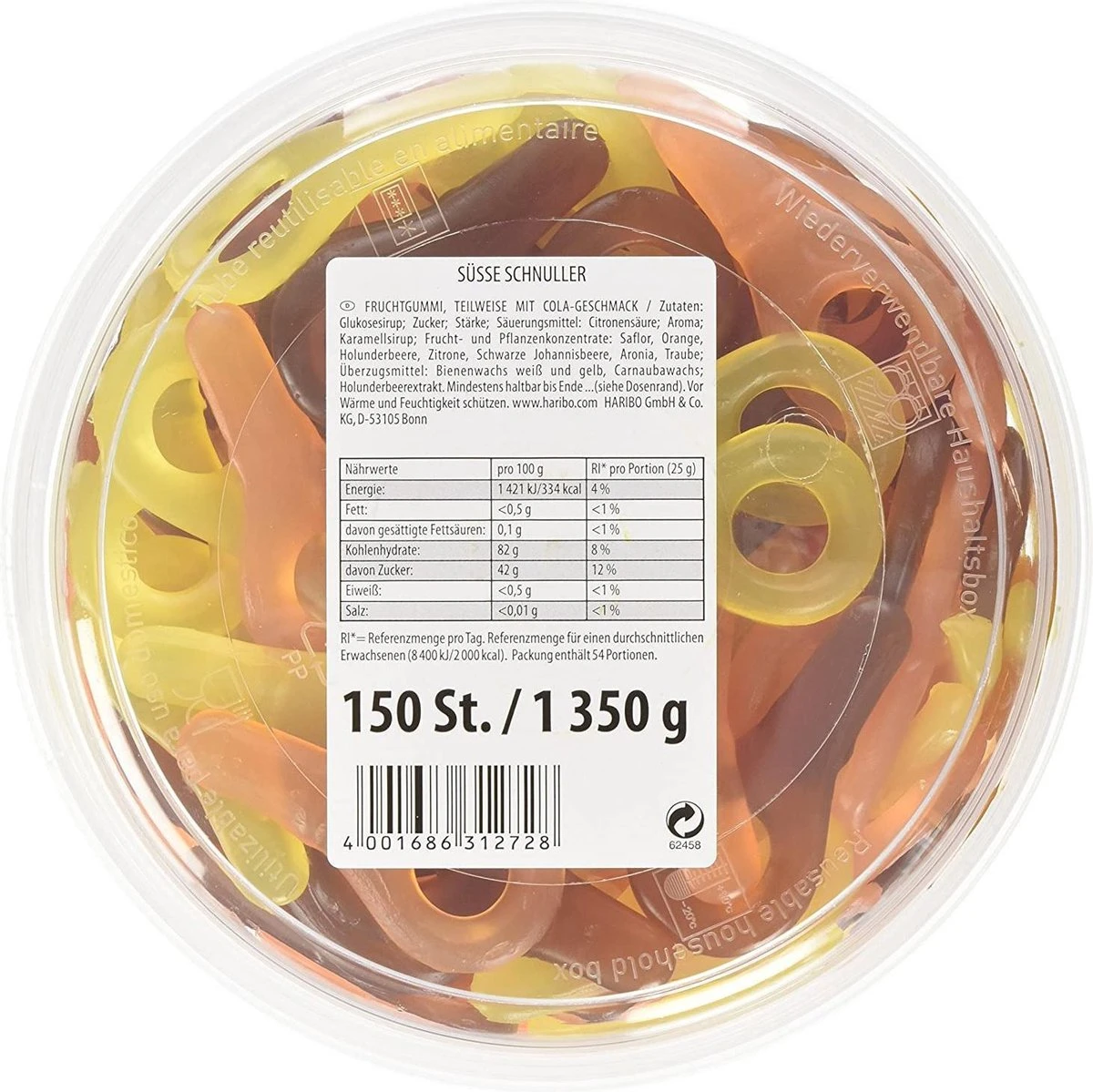 | Allergeneninformatie | glucosestroop, suiker, zetmeel, voedingszuur (citroenzuur), aroma, karamelsiroop, fruit- en plantenconcentraten (saffloer, sinaasappel, vlierbes, citroen, zwarte aalbes, appelbes, druif), glansmiddel (bijenwas wit en geel, carnaubawas), vlierbes extract) |