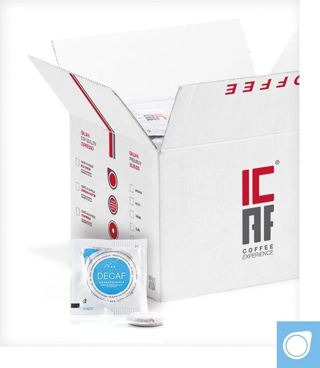 ICAF is een klein, maar zeer kwalitatief koffiemerk. De Decaf mengeling is cafeïnevrij en 100% arabica. Lichte, doch intense Italiaanse mengeling van Zuid-Amerikaanse arabica bonen.