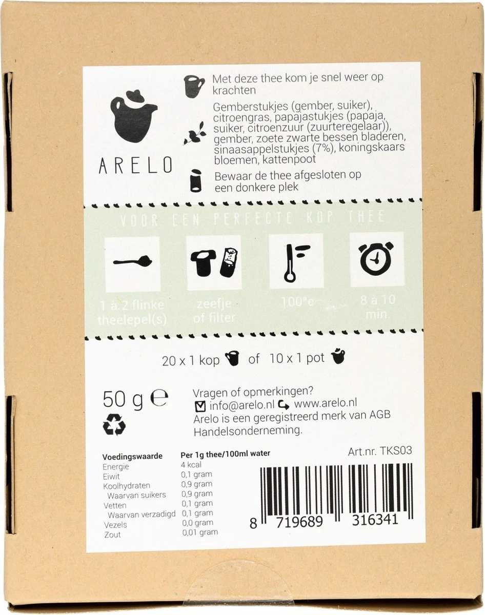 Een mix van citroengras, gember en fruitstukjes die bijdraagt om snel weer op krachten te komen.