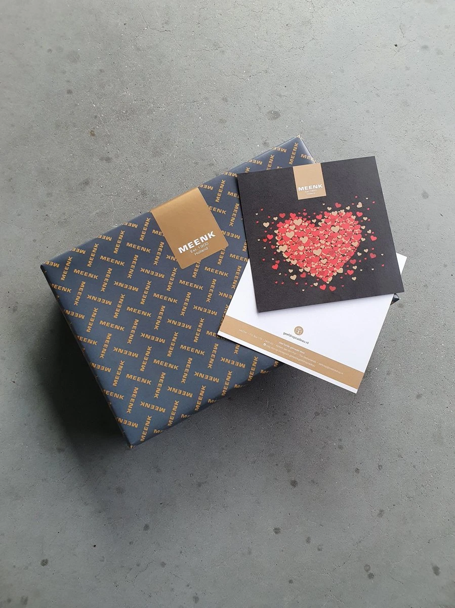 Het MEENK Drop Cadeau wordt altijd mooi ingepakt verzonden met een mooie kaart waarop u een persoonlijke boodschap kunt schrijven.