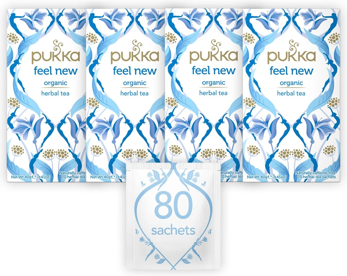 Pukka Feel New is een blend met anijszaad, venkelzaad, kardemompeulen, zoethout, korianderzaad en kurkumawortel. Gemaakt van 100% biologische ingrediënten die duurzaam verbouwd zijn. Breng deze heerlijke kruiden tot leven door ze tot 15 minuten in vers gekookt water te laten trekken. Een doosje bevat 20 individueel verpakte theezakjes die volledig biologisch afbreekbaar zijn.
